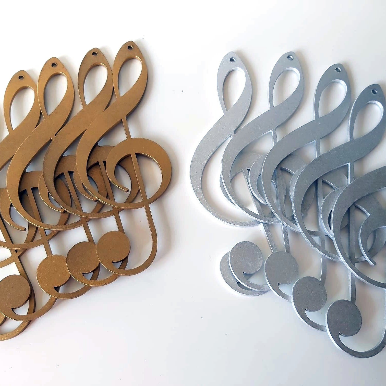 Claves de Sol cortadas en madera de 3mm, perfectas como decoración con temática musical. Se pueden dorar o platear fácilmente con spray y quedan preciosas.